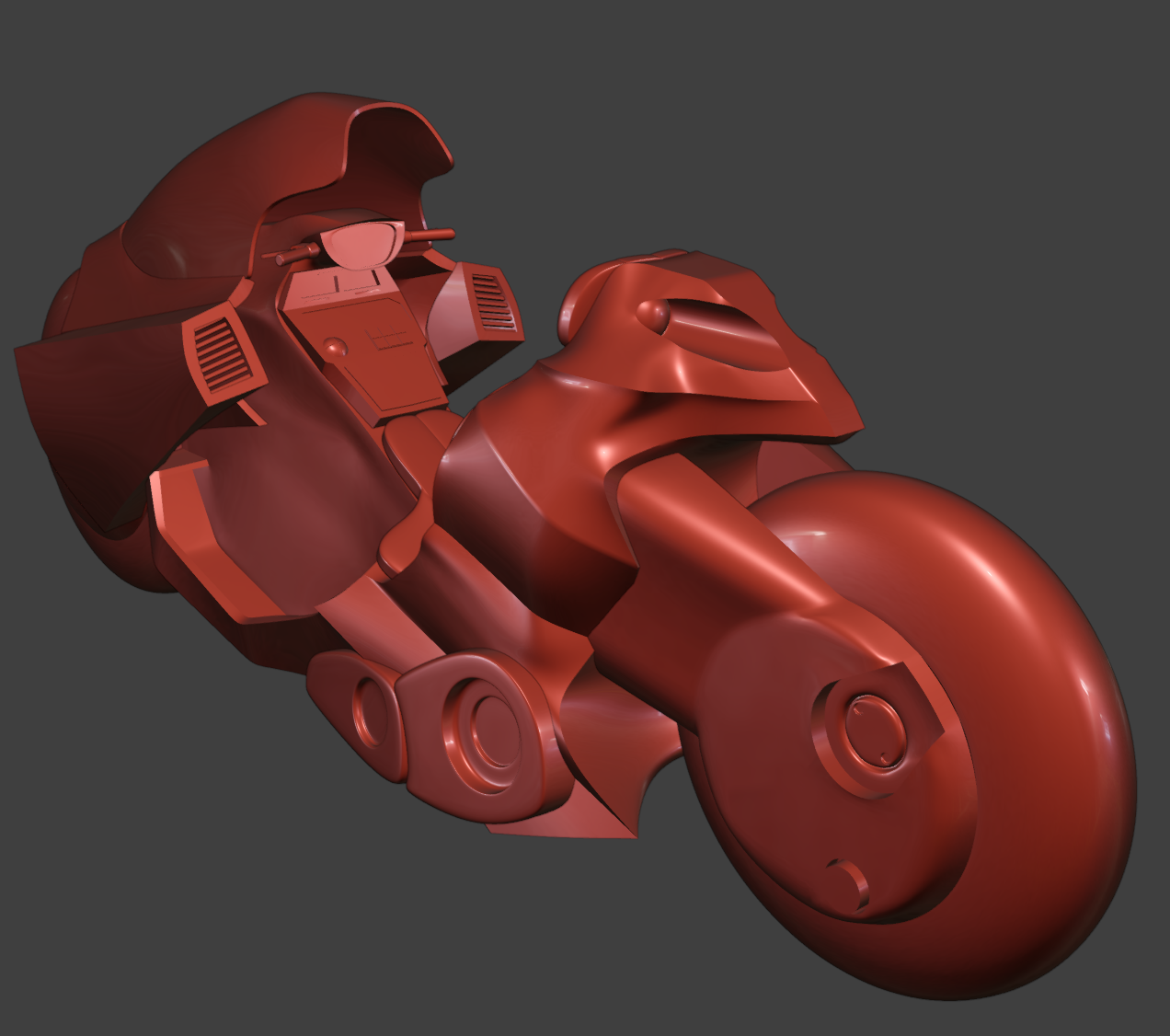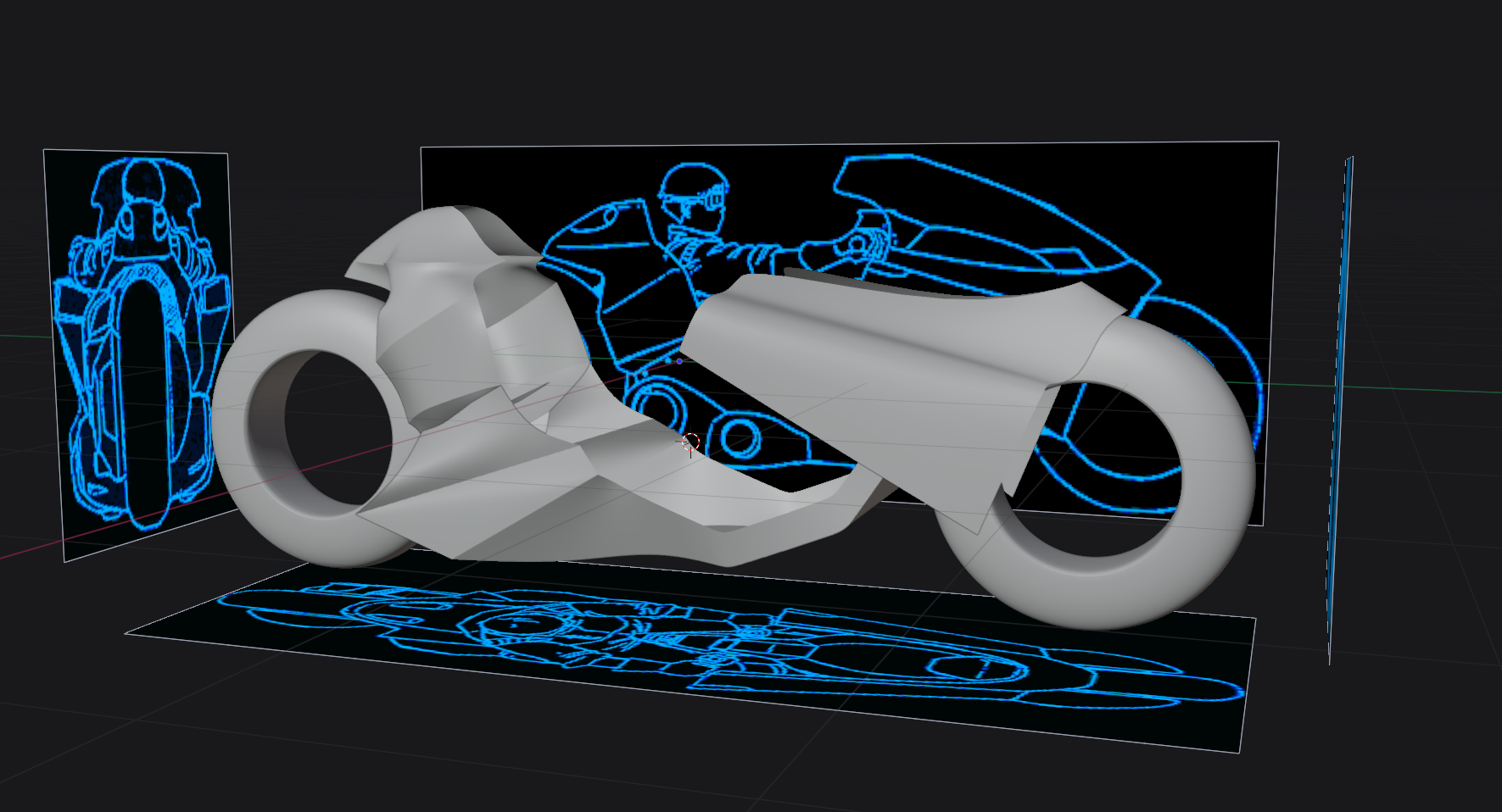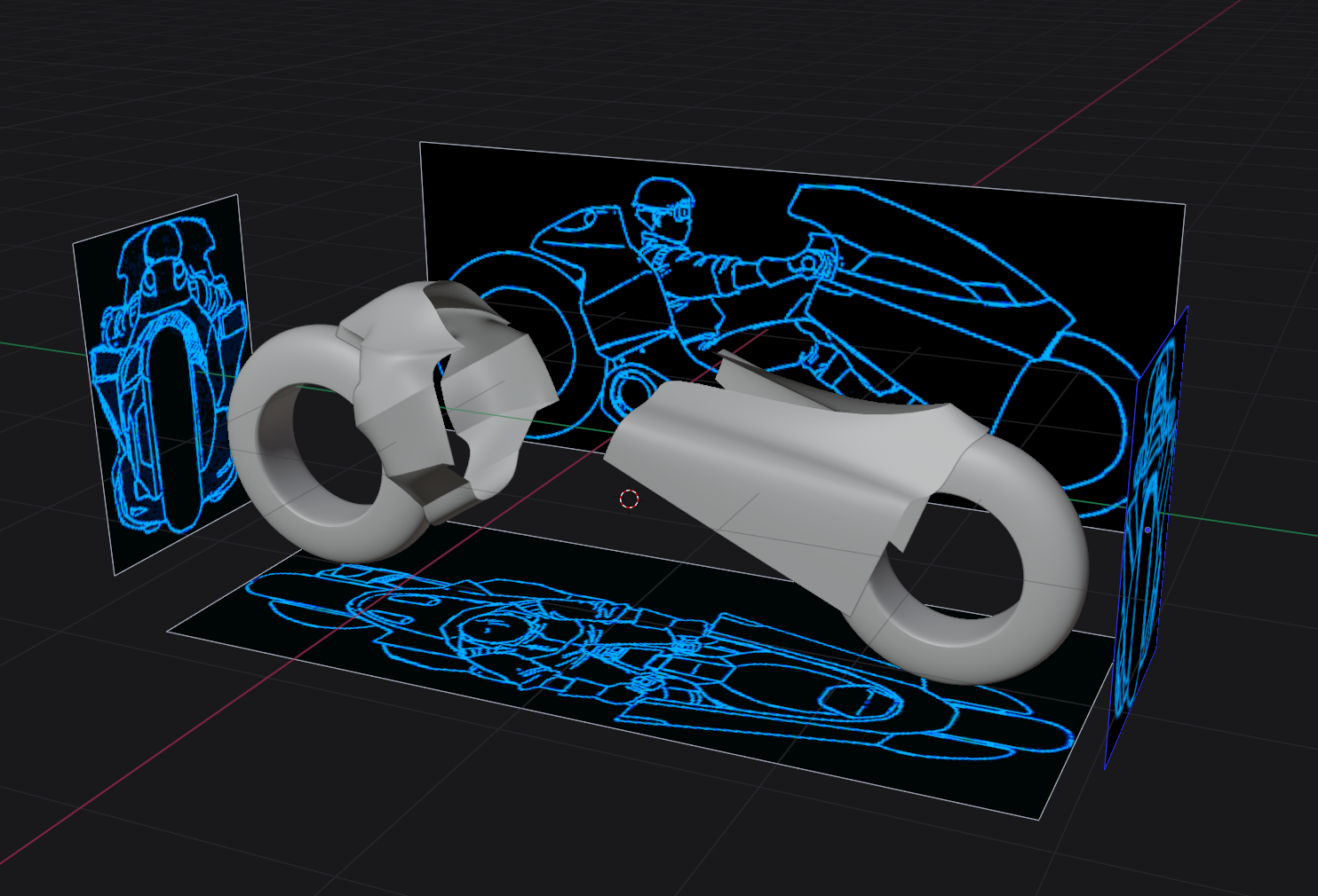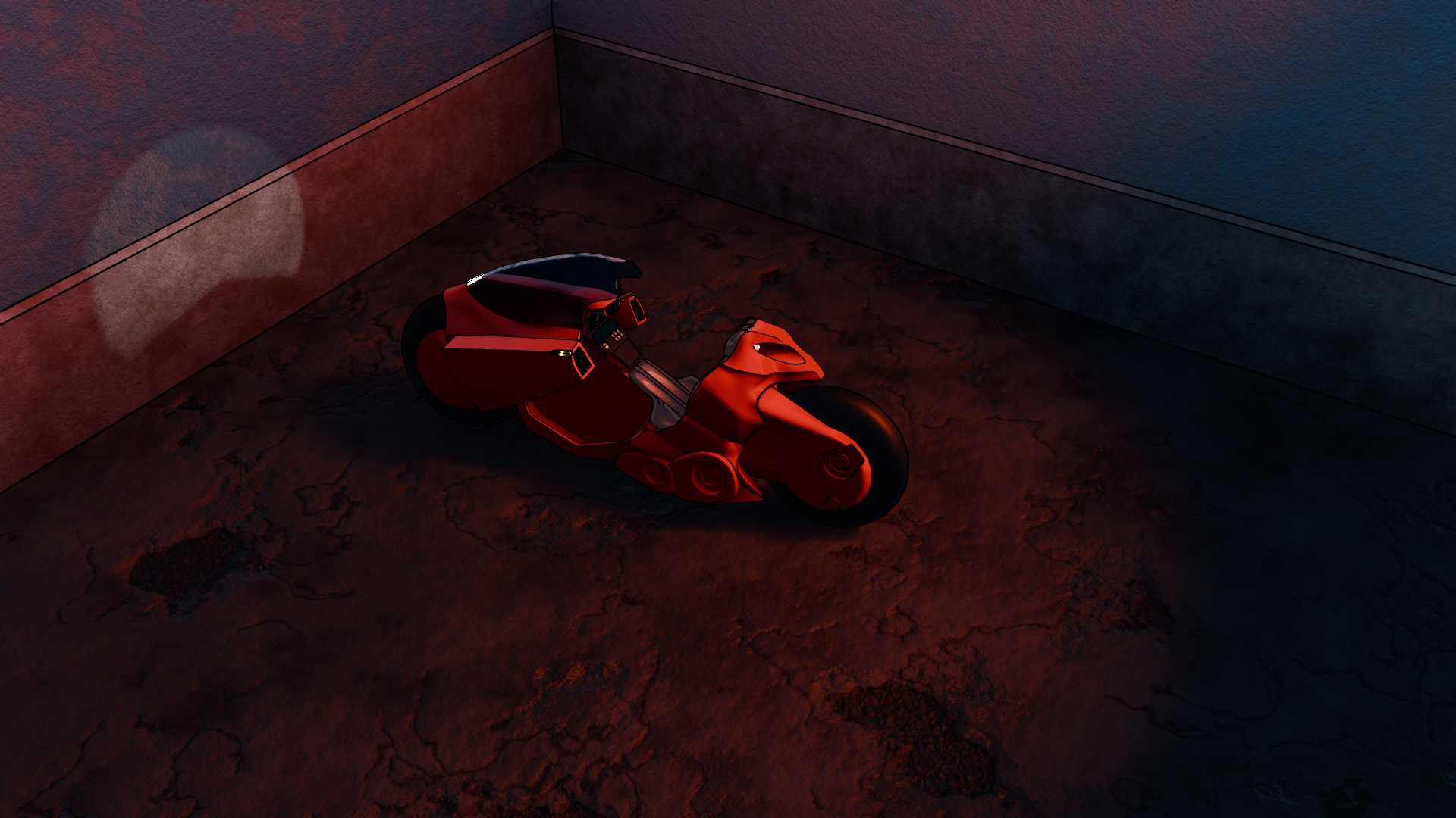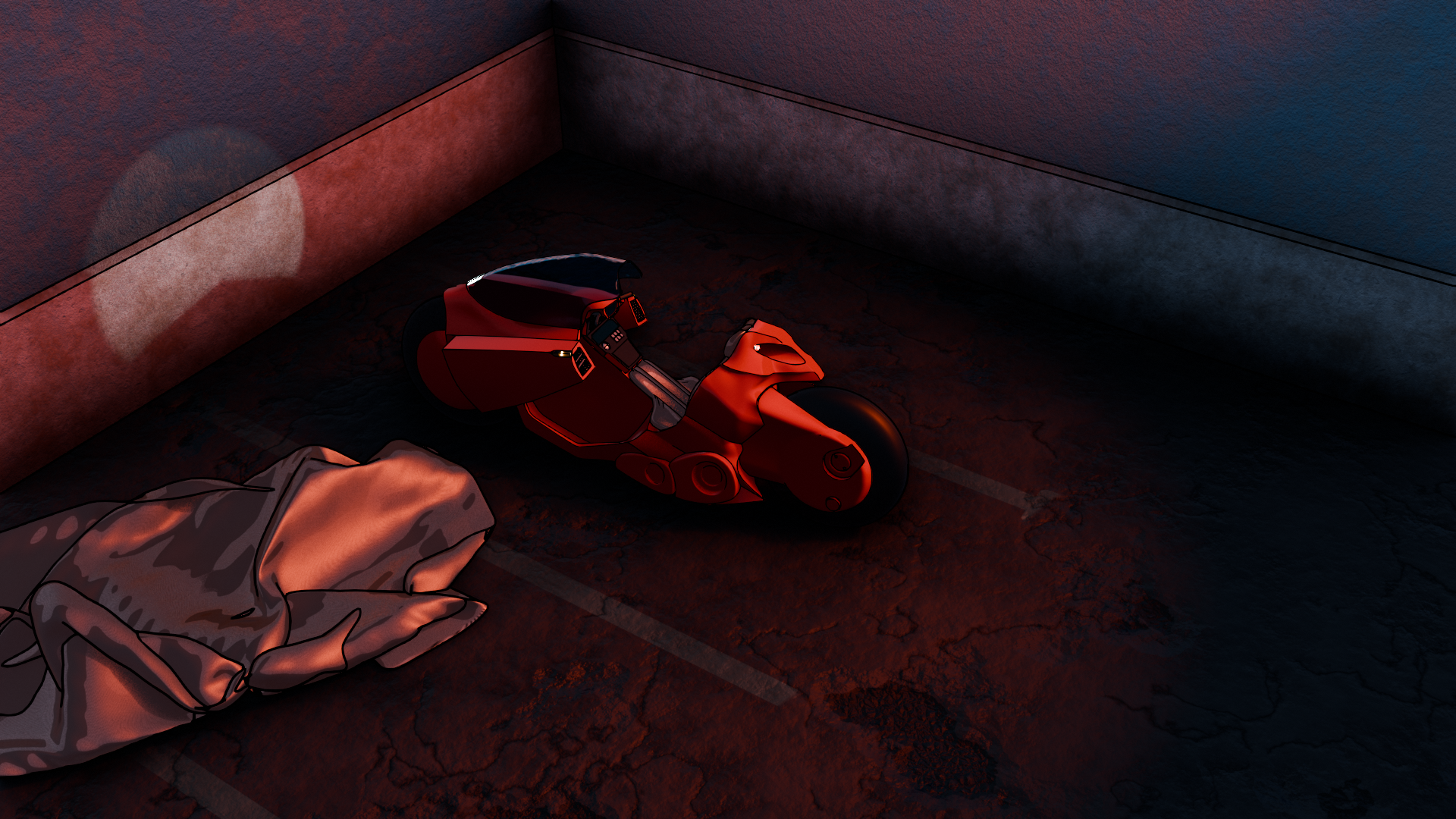 Nearly done here! While catching up on important media from before my time, I just couldn't not model Kaneda's bike. I still need to add all the stickers that are normally on the bike and probably tweak the lighting and surroundings some more. The black and blue images are from https://www.akira2019.com/akira-bike.htm and wont be used in any final renders. They came in real handy to get the proportions right!